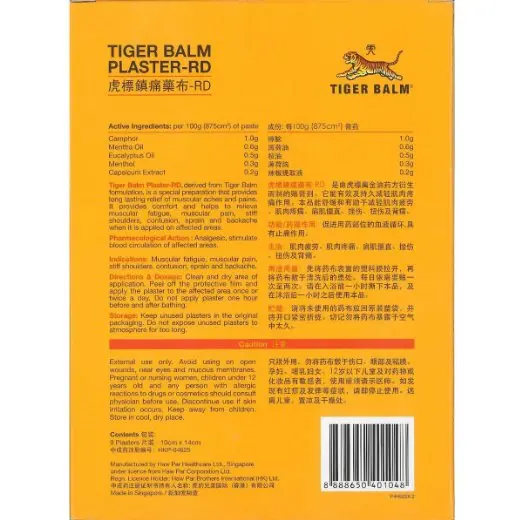 Tiger Balm Patch Plaster/Tiegao, Warm Medicated Pain Relief,Plaster-RD,Relief of Muscular Aches and Pains 10 x 14 cm 9 Sheets
